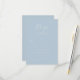 Este cartão de resposta para casamento elegante apresenta um design minimalista com um fundo azul pastel suave e texto branco nítido. O layout é centralizado, criando uma aparência equilibrada e harmoniosa, perfeita para ocasiões formais. Com fontes sans-serif limpas e uma escrita cursiva elegante para ênfase, o cartão exala sofisticação e clareza. Seu clima sereno e convidativo o torna ideal para capturar as respostas dos convidados com graça e simplicidade.