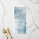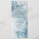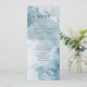 This wedding menu features a serene and sophisticated design with a watercolor background in shades of blue and white, creating an ethereal cloud-like effect. The layout is vertical and balanced, with elegant serif fonts for the title and section headings, while clean sans-serif fonts list the menu items. Customizable text at the bottom allows for personalization, making it perfect for adding names and dates. The minimalistic yet refined style emphasizes clarity and readability, ideal for a formal event.