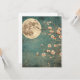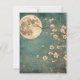 Uma delicada flor de cereja agride a noite sob uma lua de cheio luminosa, contra um pano de fundo azul rústico. Esta carta de boas-vindas captura a beleza pacífica da natureza, misturando o charme da safra com elegância celestial. Perfeito para amantes da estética boho, arte inspirada no japonês e cenas florais modernas.