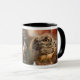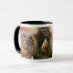 O espírito da coruja é do coletor ideal - espírito das séries selvagens de arte original pela canção de natal Cavalaris. Coruja, criatura da noite, espírito da introspecção e da intuição, mensageiro dos presságios e segredos, você é uma relação entre a obscuridade do despercebido, e um mundo da luz. Você ensina-nos ver atrás das sombras e das máscaras. Sua mensagem é seguir nossos instintos com a coragem que nos conduzirá à liberdade que nós desejamos. Esta pintura de duas corujas majestosas em um coletor ideal, cercada por um céu escuro e por nuvens com uma lua brilhante que brilha acima, faz uma caneca bonita e inspirando para toda a decoração. Este design está igualmente disponível como um poster das belas artes, um artcard, o ímã, a etiqueta, o chaveiro, e os outros artigos.