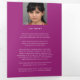 Ordem de serviço do programa funerário em branco e cor-de-rosa-amora em nossos corações para sempre 6 páginas triplicando com quatro modelo de fotos com programa funerário. Um simples programa elegante, no qual você pode simplesmente substituir o texto de exemplo e as fotos por suas próprias fotos e detalhes do serviço memorial. Outros itens correspondentes e opções de cor estão disponíveis. Design por Sarah Trett para www.mylittleeden.com (Fotos são imagens marcadas apenas para você substituir por seus próprios entes queridos).