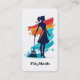 Imagem de uma mulher segurando uma vassoura contra um fundo colorido. Esse cartão de visita pode ser usado por profissionais de limpeza de casas. Personalize isso para tornar sua casa. casa casa casa casa limpando limpadores limpa empregadas domésticas