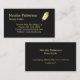 Este cartão de visita personalizado moderno e elegante apresenta um logotipo de pena dourada em um fundo preto, perfeito para notários. Texto e logotipo personalizáveis.