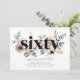 Flores modernas de aquarelas e folhas de vassoura com a palavra "sessenta" a preto. Perfeito para a sua 60ª Festa de aniversário!