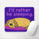 É você sempre cansado ou querendo ir dormir? Este mousepad é apenas para você! Um cão dos desenhos animados do sono naps com um subtítulo que leia, "mim preferencialmente estaria dormindo." Faz um grande presente para um amante preguiçoso da pessoa ou do cão, ou um colega de trabalho que pareça sempre cansado.