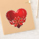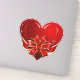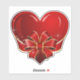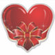 vinheta de vinilo de corte personalizado com a imagem de um coração vermelho cintilante embrulhado numa fita vermelha e dourada amarrada num arco. Veja a etiqueta de presente correspondente. Ver a coleção inteira do adesivo de dias do Namorados nos CONVITES | Seção Stickers & Labels