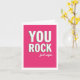 O cartão de saudação 'ficar bem' é simples, mas impactante. O quadrado rosa claro com uma borda branca imediatamente pega o olho e exude um senso de positividade. As letras grandes em blocos brancos que leram "VOCÊ ROCK" com um efeito de sombra verde à sua volta transmitem uma mensagem forte de apoio e encorajamento ao destinatário. A letra de estilo manuscrito usada para o texto menor que diz "apenas dizendo" acrescenta um toque pessoal, fazer que o cartão se sinta sincero e sincero. De um modo geral, este cartão é uma forma perfeita de recordar a alguém que são amados e valorizados durante um período difícil. 🌟 🌷