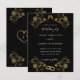 Fontes e Cores Personalizadas - Crie Seu Próprio Design Exemplo de Convite de Casamento Personalizado Moldura de Ornamentos Florais Dourados com Alianças de Casamento e Copos de Brinde de Champanhe e Corações de Amor modelo de Convites de Casamento de Luxo Preto e Dourado - por MIGNED- Crie Seu Convite de Casamento Único - Para Personalizar e Customizar, por favor clique em "Personalizar ainda mais" - Adicione Seu Texto / Nome / Informações e mais - Redimensione e mova ou remova e adicione elementos com a ferramenta de Personalização ! Parabéns aos Recém-Casados :)