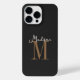 Obtenha esta aparência de designer para proteger seu telefone inteligente em estilo adicionando seu toque pessoal ao design. Personalize o modelo de texto com seu nome e monograma inicial para uma aparência que é você! A cor de fundo deste caso é um preto plano moderno com um nome inicial castanho e um nome bege de marfim.
