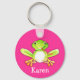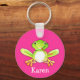 Um sapo verde, bonito, com um sapo pintado bonito, lê Karen ou personaliza com seu próprio nome. Perfeito para as crianças identificarem bolsas escolares ou chaves para as crianças. Pintado e desenhado por Sarah Trett.
