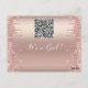 É uma garota! Design seu próprio Rosa personalizado Dourado Blush Glitter Sparkle Drives de Luxo Chic Personalizado Baby Girl Invations com código QR ( verso ) ou Remove - Dasign by MIGNED - Crie seu único Chá de fraldas Invite - Para personalizar e personalizar, clique em "Personalizar mais" - Adicione seu texto / nome / informações e mais - Redimensionar e mover ou remover e adicionar elementos / texto com a ferramenta Personalização. Escolha / adicione sua fonte/tamanho e cor de texto favoritos! Parabéns Pelo Seu Novo Bebê!