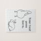 O desenho de contorno bonito de pato que olha o coelho coelho, com um marcador de posição modelo para o seu texto, é impresso em quebra-cabeça personalizados. As quebra-cabeça são uma escolha divertida para a Páscoa, e os animais e as letras podem ser coloridos! Obrigado por comprar em CherylsArt no Zazzle.