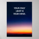 Seu Único Limite É Sua Mente. As citações da vida inspiracional ou as declarações motivacionais de negócios com uma fotografia noturna do céu e estrelas no espaço são líderes perfeitos para o sucesso, a produtividade e a disciplina se você tem paixão e a mentalidade certa.
