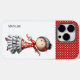 Capa de telefone personalizada com uma ilustração de dançarina de sevillana. O fundo é vermelho com bolinhas brancas. Personalize o texto com seu nome e pronto para ir! Esta capa de telefone é única, você não a encontrará em nenhum outro lugar! Ilustrada e projetada por Patricia Alvarez.