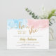 Este gênero horizontal revela um convite de festas que apresenta um texto de caligrafia dourado faux glitter em um fundo cor-de-água rosa e azul. Personalize este convite divertido e moderno com as informações sobre o seu gênero.