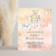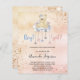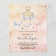 Para um chá de fraldas revelador de gênero. Um ouro rústico e fundo cor-de-rosa. Um ursinho de pelúcia com balões brancos, azuis e cor-de-rosa e poeira brilhante ouro. Personalize e adicione o nome da mãe a ser e os detalhes da festa. O nome e o texto: Rapaz? Rapariga? Escrevem-se com um guião estilo manuscrito
