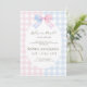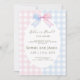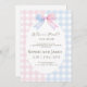 É rosa ou azul? Celebre a grande revelação do seu bebê com este adorável convite revelador de gênero! Apresentando arcos doces e um padrão clássico de gingham em rosa e azul, este design define o tom perfeito para um chá de fraldas divertido e festivo. Uma mistura encantadora de brincadeira e tradicional, ideal para qualquer garoto ou garota que revele a festa.