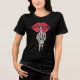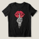 A bold edgy illustration featuring glittery red lips and a skeletal hand making a shushing gesture, perfect for statement fashion and gothic streetwear designs.
