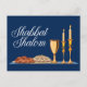Shabbat Shalom janta cartão postal em azul lindo com escrita elegante sobre um janto Shabbat com pão de chalá, vinho e velas. Que tenha muitas bênçãos. Personalize as costas com seus detalhes de convite para jantar judeu.