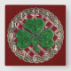 Shamrock Vermelho e Nódulos Celtas Relógio Quadrad