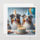 Um belo convite para retratar 2 espertos pastores australianos com bolo de aniversário e chapéus de festa, um convite para excelentes para pastores australianos e amantes de cães. O cartão pode ser totalmente editado e personalizado para ajustado das suas necessidades.