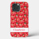 Recursos de design: cão de abrigo ilustrado em um padrão repetitivo com estampas brancas e ossos de cachorro sobre um fundo vermelho. O produto personalizado pode ter qualquer nome ou frase adicionado ao design. Altere a fonte, o tamanho da fonte e a cor da fonte para o seu gosto usando a ferramenta personalizar.