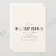 Este modelo de convite de festa surpresa ostenta um fundo bege quente que define um tom sutil e elegante para o evento. As palavras "É uma Surpresa!" são exibidas de forma proeminente em uma fonte de letra cursiva divertida, adicionando um senso de emoção e expectativa ao convite. Abaixo deste cabeçalho animado, há uma área designada para os detalhes da festa, incluindo data, hora, local e quaisquer instruções especiais para manter a surpresa intacta. O design geral atinge um equilíbrio perfeito entre diversão e sofisticação, tornando-o uma escolha ideal para qualquer celebração surpresa.