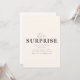 Este modelo de convite para festa surpresa ostenta um fundo bege quente que define um tom sutil e elegante para o evento. As palavras "É uma Surpresa!" são exibidas de forma proeminente em uma fonte de letra cursiva divertida, adicionando um senso de emoção e expectativa ao convite. Abaixo deste título animado, há uma área designada para os detalhes da festa, incluindo data, hora, local e quaisquer instruções especiais para manter a surpresa intacta. O design geral atinge um equilíbrio perfeito entre diversão e sofisticação, tornando-o uma escolha ideal para qualquer celebração surpresa.
