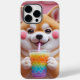 Shiba Inu Adorável com o Rainbow Bubble Tea Phone