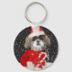 Shih Tzu vestida de suéter vermelho e Papai Noel é uma design de Natal em chaveiro.