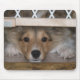 Filhote de cachorro de Sheltie que espreita sob a porta do bebê