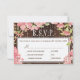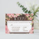 Texto editável RSVP de casamento com opções de menu com rosas roxos cor-de-rosa com rosca e luzes cintilantes sobre fundo de madeira marrom-escuro. Ideal para o seu verão | outono | elegante país russo | casamento temático do jardim ao ar livre.