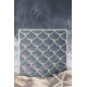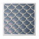 This coastal ceramic tile design features a pattern of stylized fish or mermaid scales in shiny dark navy blue tones outlined in ivory white. The flowing, hand-drawn lines create a sense of movement, while the watery textures add depth and a calm, ocean-inspired atmosphere. Perfect for beach-inspired décor themes, it brings a touch of underwater serenity to any room. Note: design may contain generative content