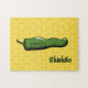 Um pimenta verde de shishito chili, também conhecido como kwari-gochu em coreano, é decorado com padrões inspirados em designs coreanos e se senta sobre um fundo amarelo com uma versão menor do mesmo padrão e uma etiqueta de roteiro no canto. Este pimento suave é consumido por toda a Coreia e no Japão cru e cozido.
