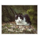 Gato-pequeno preto-branco sentado entre as árvores