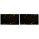 Image with traces in the red and lime-green color in black background. Wavy or bent traces.