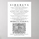 Poster da página de título de Sidereus Nuncius, o primeiro livro publicado de Galileu descrevendo o céu noturno através de um telescópio.