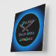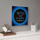 Um design iluminado a azul com um anel aqua.As palavras coloridas são "Siga o seu próprio arco-íris" Por favor, note- Não é um produto led