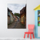 Grab a cool poster with a photograph taken in Sighisoara, Romania - the Transylvanian medieval city known for the legend of Dracula. Cobblestone roads and colorful houses are typical in this old beautiful town.