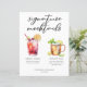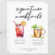 Esta lista de mocktails de assinatura química apresenta uma simples tiopgrafia negra acima de 2 bebidas bonitinhas e seus ingredientes para seu bar de casamento. Um Shirley Temple e uma mula de Moscou não alcoólica adicionam um talento legal ao seu menu de bar. Preencha com os nomes dos casais e a data para sua recepção.