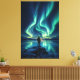 Feel the quiet power of a moment suspended in time. This breathtaking canvas print captures a lone figure standing beneath the vast glow of the aurora borealis, where light dances across the night sky in a mesmerizing display of nature’s energy.