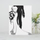 Uma noiva e um casal de noiva na silhueta. Com a noiva em um vestido branco de noiva segurando um buquê floral de flores e um padrão floral ao redor de seu vestido