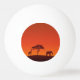 Fundo africano da paisagem do safari que caracteriza silhuetas de um girafa, de uma árvore e de um elefante contra o por do sol em máscaras da cor alaranjada e vermelha.