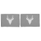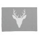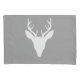 A design original da silhueta branca de Destei de uma cabeça de veado com grandes galhadas em uma cor de fundo de cinza.