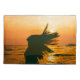 Silhueta de garota, pôr do sol do mar, liberdade.