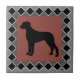 Uma silhueta de Rhodesian Ridgeback decora este ~ gráfico ArtDeco do azulejo encontra o meio século moderno com um design geométrico e uma paleta de cores saturada. Os sentimentos pessoais podem ser adicionados usando a ferramenta de personalização do texto. Dois tamanhos do azulejo estão disponíveis, e os quadros ou as caixas de madeira da lembrança podem ser pedidos para aumentar seu azulejo. Um presente distintivo para algum amante do cão, e uma escolha excelente para troféus da raça.