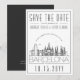 Um convite de casamento único para um casamento que acontecerá na bela cidade de Barcelona, Espanha. Este convite apresenta uma ilustração estilizada da linha do horizonte única com o nome embaixo. Isto é seguido pelas informações do seu dia de casamento em um estilo aberto correspondente. No verso do convite há uma cor cinza escuro para complementar a aparência e a sensação. Todos os elementos individuais do cartão de convite são desbloqueados para que você possa alterar quaisquer detalhes necessários, como tamanhos de fonte, estilos e muito mais, usando a função de personalização. Você pode até adicionar uma foto dos futuros noivos no verso com um filtro preto e branco para combinar com a frente do cartão de convite. Qualquer que seja a sua escolha, lembre-se de se divertir sendo criativo.