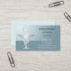 Um cartão de visita moderno farmacêutico com o tema azul-palha com uma imagem estilizada do caduceus prateado (que você pode arrastar ou apagar conforme desejar).