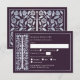 Celebrate your special day with these royal medieval sword wedding RSVP cards against an eggplant background. You can customize this further by clicking on the "PERSONALIZE" button. PLEASE NOTE: The silver on this item is NOT real foil and is printed in flat colors