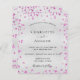Um convite de casamento moderno, elegante e minimalista. Fundo de prata falsa decorado com corações cor-de-rosa fuchsia. Personalize e adicione seus nomes e detalhes do casamento. Letras pretas coloridas.